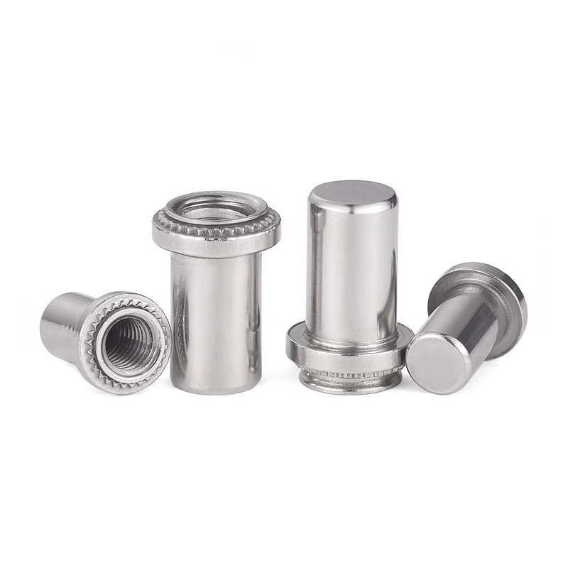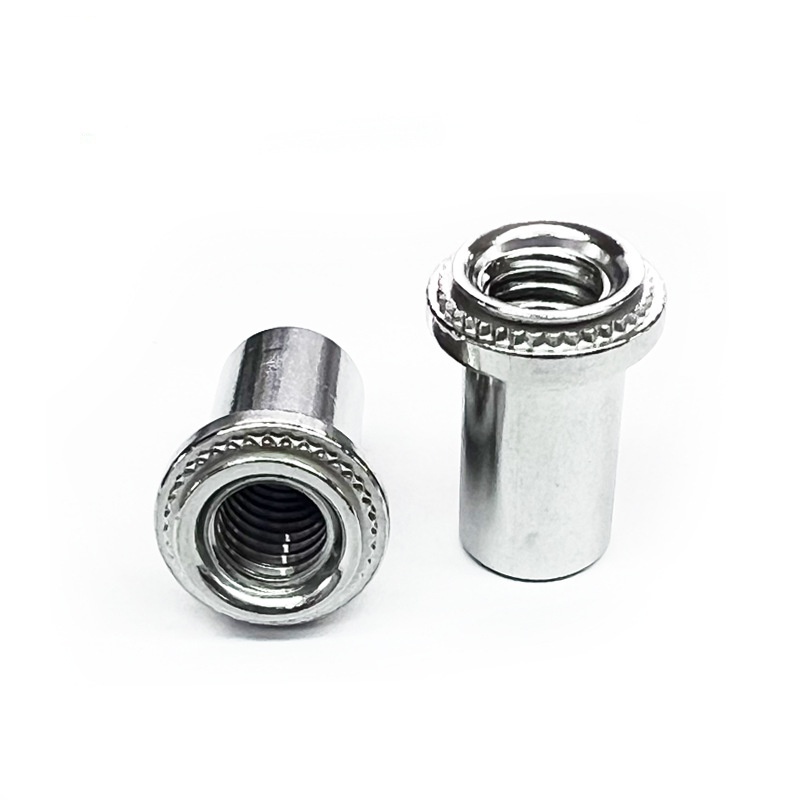 Untuk memasang mur penglinching penyegelan baja karbon, Anda memerlukan alat klinik khusus dan set die yang persis cocok dengan ukuran kacang. Pertama, masukkan mur ke dalam lubang pre-sunched di lembaran logam. Kemudian alat ini memberikan tekanan terkontrol, yang membuat pilot dan knurl tenggelam ke dalam logam di sekitarnya. Proses pembentukan dingin ini mengunci mur stainless steel di tempatnya untuk selamanya dan pada saat yang sama, ia menyemprotkan mesin cuci penyegelan bawaan ke panel. Begitulah cara menciptakan segel tahan bocor yang membuat kacang-kacangan ini unik.