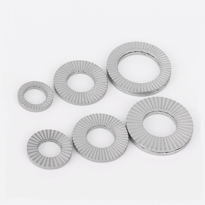Gagal Safe Dua Lipatan Mandiri Mandiri biasanya dibuat dari baja karbon tinggi (seperti SAE 1070 atau 1095) atau baja paduan. Bahan -bahan ini memberikan cuci dengan sifat elastis yang diperlukan untuk operasi yang tepat, sementara juga memberikan kekuatan tarik tinggi yang diperlukan untuk operasi yang dapat diandalkan dalam berbagai kondisi operasi. Kemampuan alami Spring Steel untuk bangkit kembali memungkinkan tab banyak menekuk saat dimasukkan, menciptakan kekuatan penguncian penting yang menolak berputar. Karbon di dalamnya membuat baja cukup keras sehingga punggung kecil dapat benar -benar menggali permukaan. Steel Fail Safe Dua lipatan mesin cuci pengunci cukup kuat untuk penggunaan rutin dan untuk situasi di mana ada banyak stres.