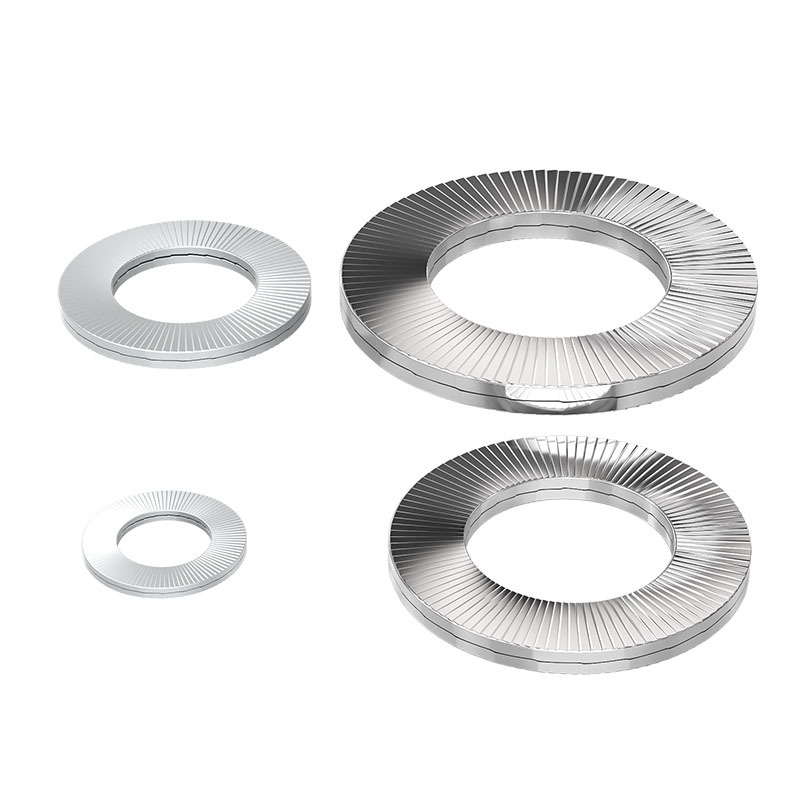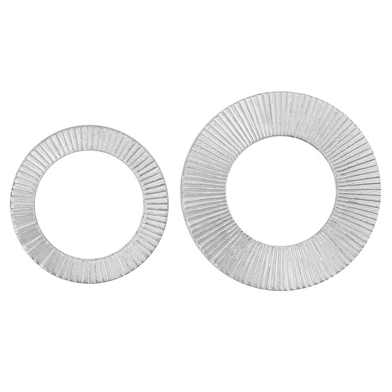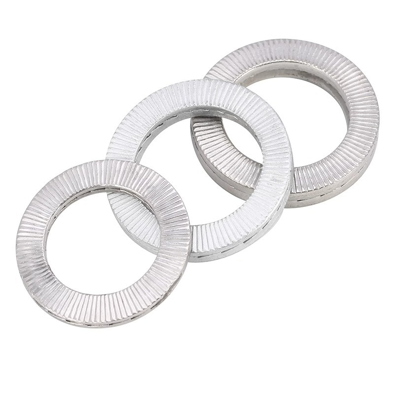 Dua pencuci self-lock yang tak tergoyahkan memiliki pengaturan dua cincin yang tidak seperti yang biasa. Cincin bagian dalam mesin cuci pas dengan pas di pengikat seperti sekrup, sedangkan cincin luar menekan dengan kuat ke permukaan yang melekat. Bersama -sama, kedua bagian ini menciptakan gesekan yang signifikan dan ketegangan tertentu yang mencegah pengikat berputar dan longgar bahkan selama getaran. Mereka bekerja lebih baik daripada mesin cuci datar atau pegas biasa.